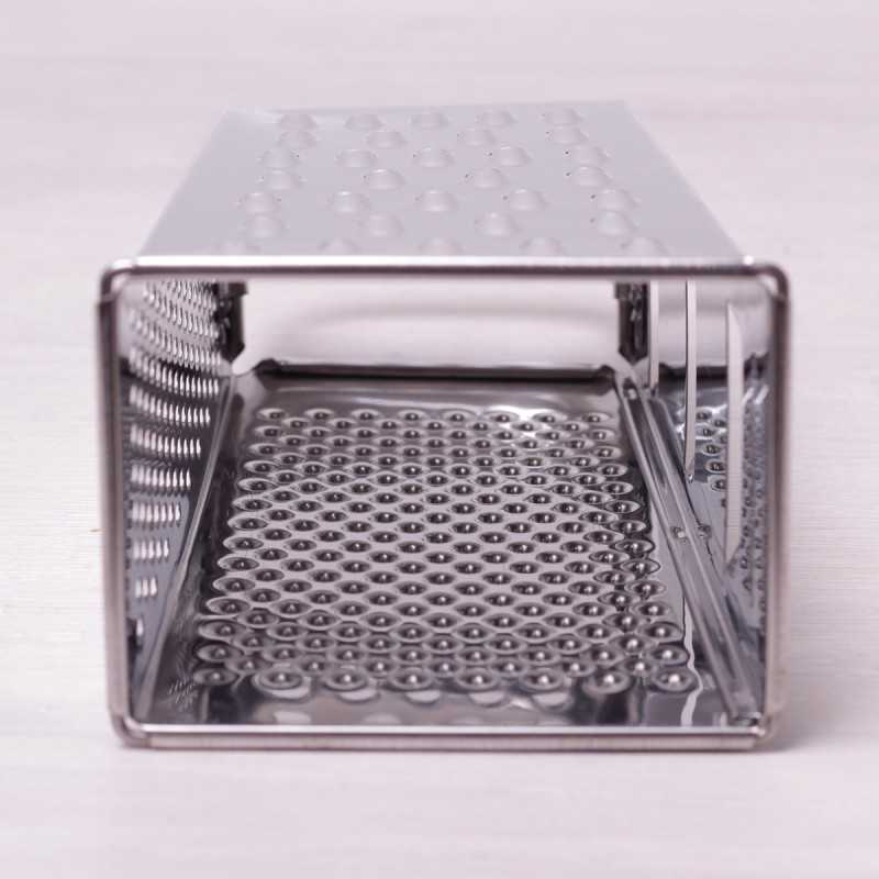 Praktické štvorstranné strúhadlo Kamille je vyrobené z kvalitnej nehrdzavejúcej ocele leštenej do vysokého lesku. Čepele strúhadla sú vhodné na tvrdé aj mäkké produkty. Môžete ho použiť na strúhanie zemiakov, mrkvy a mnohých ďalších druhov zeleniny, ovocia, ale aj syrov a iných potravinárskych výrobkov. Strúhadlo je vybavené bezpečnou plastovou rukoväťou, ktorá bezpečne padne aj do mokrej ruky. Vďaka tomu umožňuje presnú a stabilnú prácu.