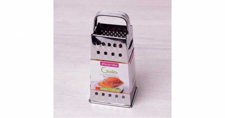Strúhadlo štvorhranné Kamille z nehrdzavejúcej ocele s plastovou rukoväťou a silikónovou základňou. Má 5 druhov čepelí, jednoducho a pohodlne sa používa a bude užitočné v každej domácnosti. Odporúča sa jeho ručné umývanie.
