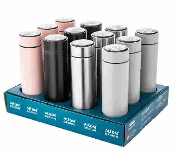 Termohrnček s LED displejom zobrazujúcim teplotu nápoja zaručuje udržanie teploty nápoja až 12 hodín a je určený na uchovávanie teplých aj studených nápojov. Ľahko a pohodlne sa prenáša. Vonkajšia stena sa nezohrieva. Výdrž batérie potrebnej na display je až 24 mesiacov.
