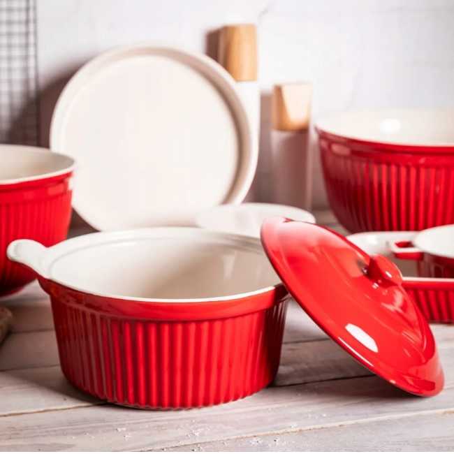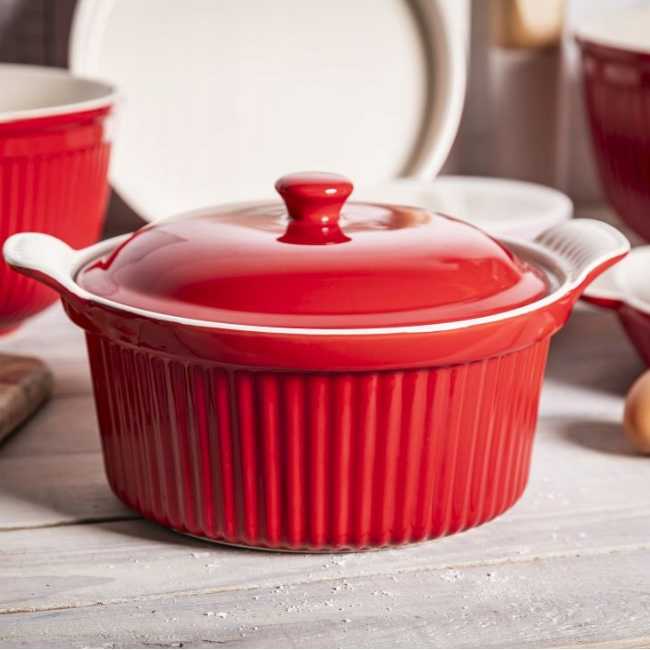 Keramická zapekacia misa s pokrievkou 2,2l -perfektná na zapekanie lasagne, zemiakových gratiniek, zeleniny či mäsových pokrmov. Červený dizajn krásne servíruje priamo zo stola.Odolná voči teplotám / do 220 °C/.